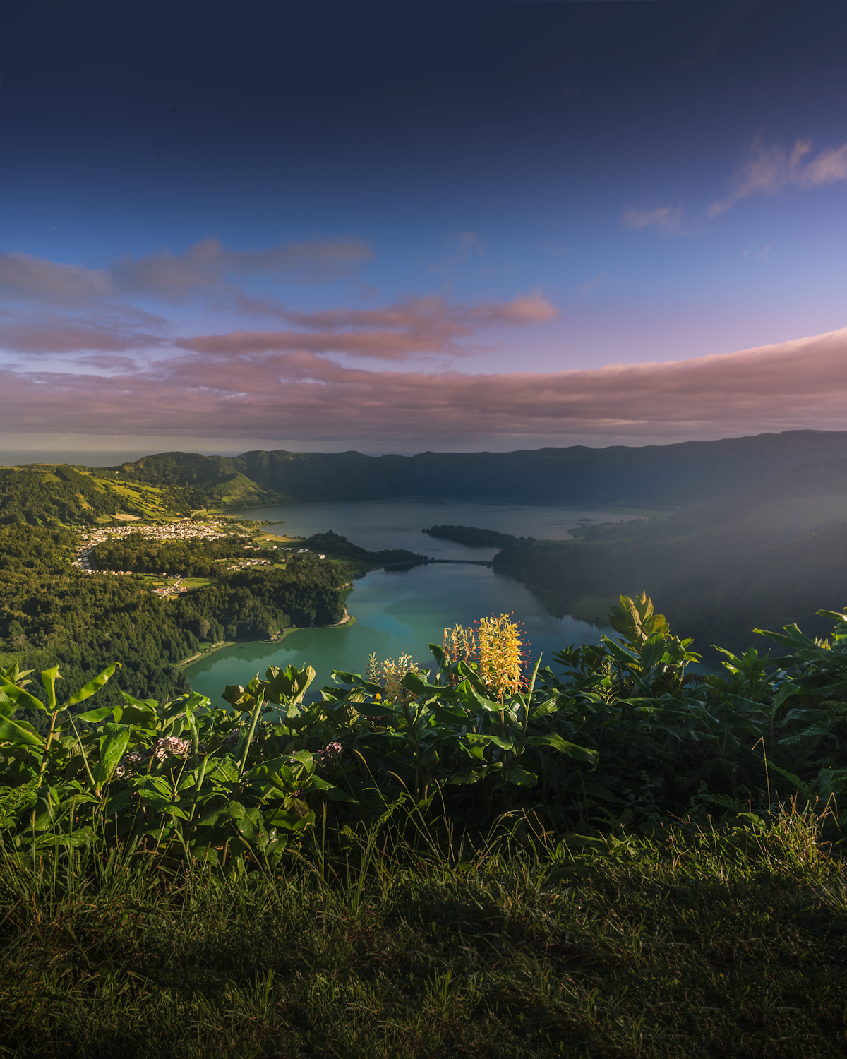Depart Furnas by 7:30am. Get to Sete Cidades before any tour groups arrive. Two crater lakes, one blue, one green, inside an ancient caldera. Drive the rim. Stop at Vista do Rei overlook.
